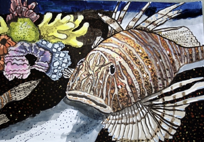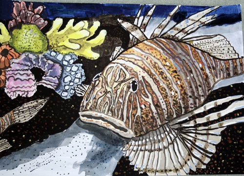 MOA奨励賞ハナミノカサゴ サンゴのとなりで休けい中岡村 匠真 みどり坂小 4年 |