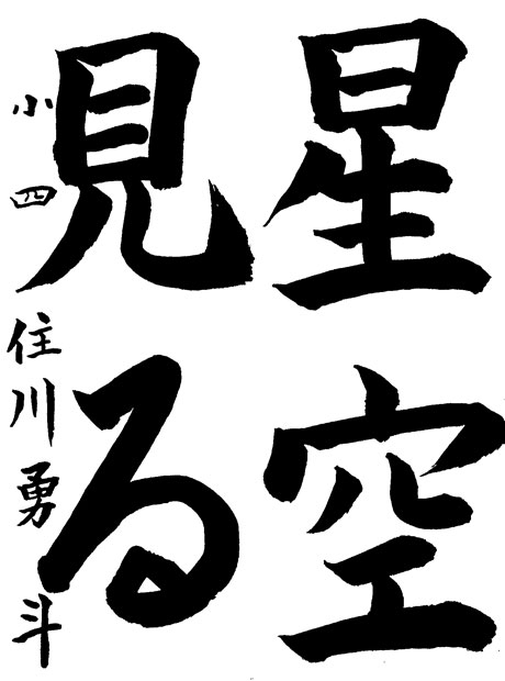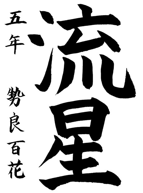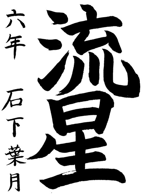 「流星」という字を書こうと思ったのは、私の通っている教室で書いたことがあることと、かっこいいなぁと思ったからです。