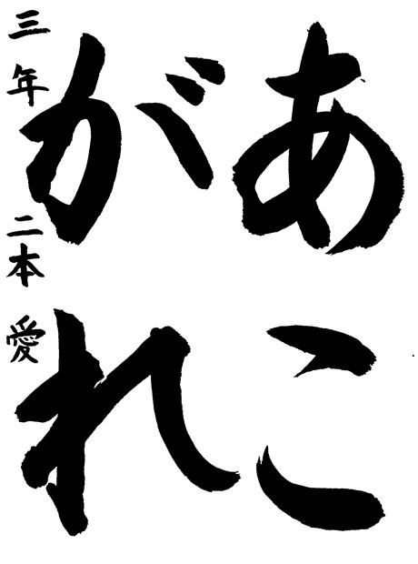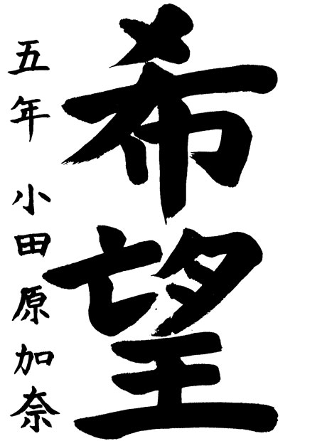 今回、受賞できてとてもうれしいです。これからも大好きな習字を続けて、もっともっと上手になりたいと思います。ありがとうございました。