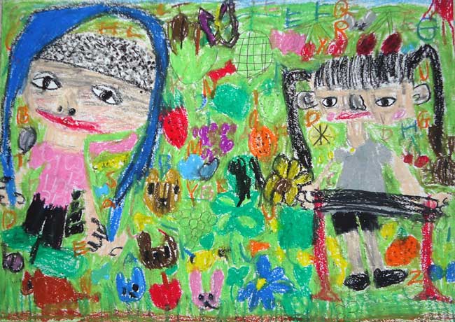 よく ふしぎな絵を描いていましたが、鉛筆画ばかりで、絵の具で塗るのは初めてだったので大変そうでした。下書きから 完成まで10日くらいかかりましたが、想像しながら楽しそうに描いていました。