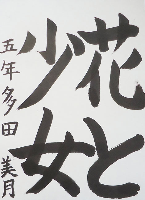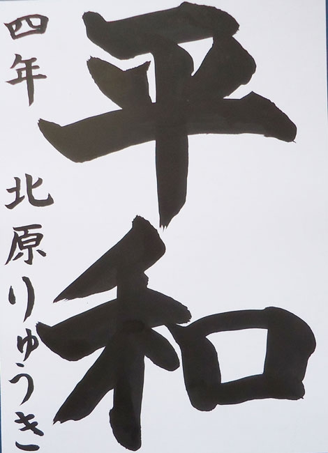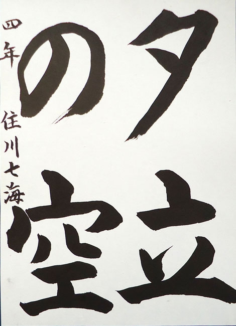 思うように筆が運べなかったり、半紙に散った墨が気になったりと、色々苦戦していましたが、最終的には納得いく作品ができて本人も満足していました。賞を頂いた事で自信がつき、今後の励みになればと思います。