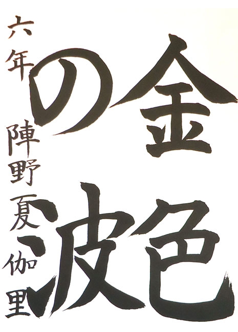 この度は賞を頂き大変嬉しく思います「未知の世界」を書くという事でしたので私なりに筆使い等アドバイスしておきました。毎日少しの時間を利用してこつこつ書いておりました 夏休みの終わり頃「一番集中して書けた!!」と言ってみせてくれました 努力すれば結果が出るという事を身をもって感じたことでしょう 今後も何事にも落ち着いて真剣に取り組む人であってほしいと願っております 有難うございました。