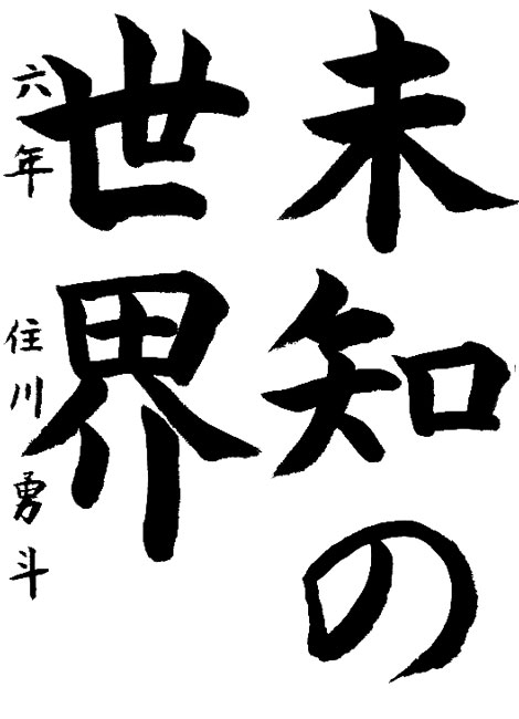 「未知の世界」という題にしようと思ったのは、ぼくが現在6年生で、これから中学、高校また7年後オリンピックなど経験したことの無いことが、次々はじまるのでわくわくした気持ちでいるからです。書きながら、将来ぼくはどんな仕事をしているだろうかとか、月旅行に行っているかもしれないとか考えていました。