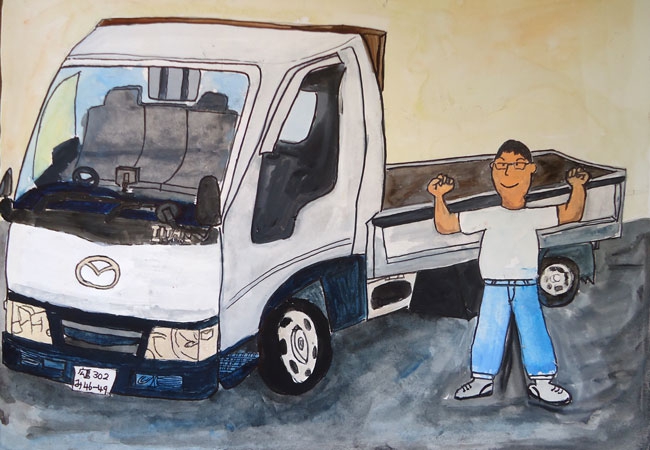 いっぱい時かんがかかったけど、とおくに絵をおいてながめてつけたしていきました。できあがった時は、うれしかったです。